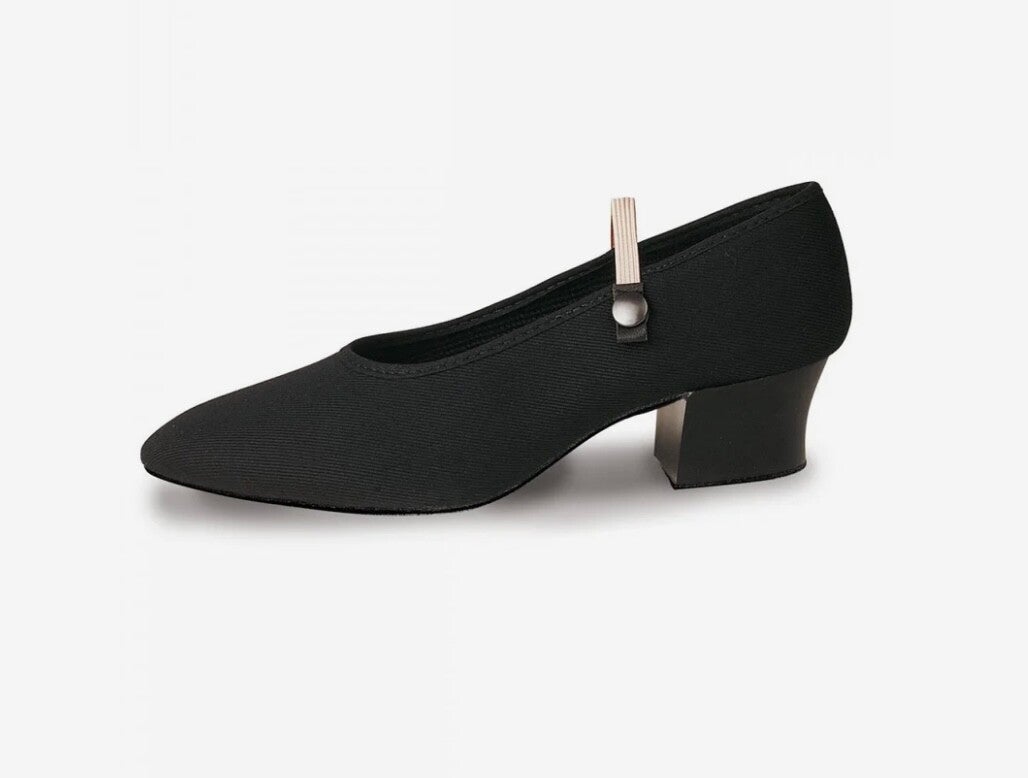 Canvas regulation shoe with Cuban heel, and suede sole.