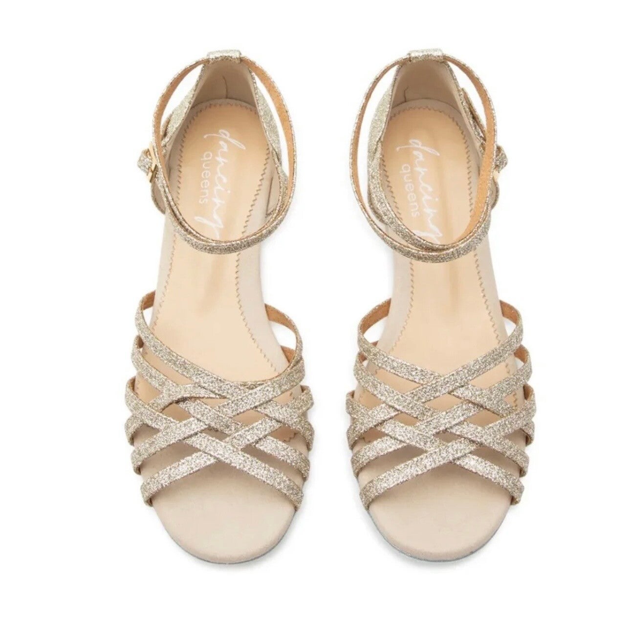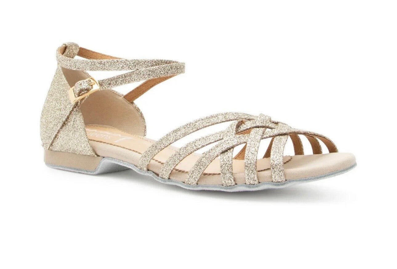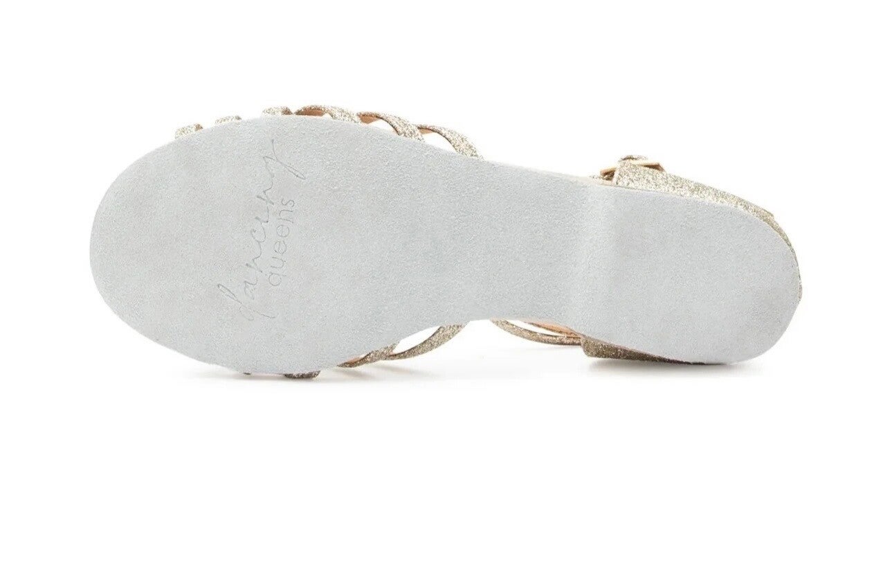 This suede sole dance sandal comes in a range of colours, beige, black, grey (actually more like brown), black glitter, gold glitter and multi glitter and in a full range of sizes.