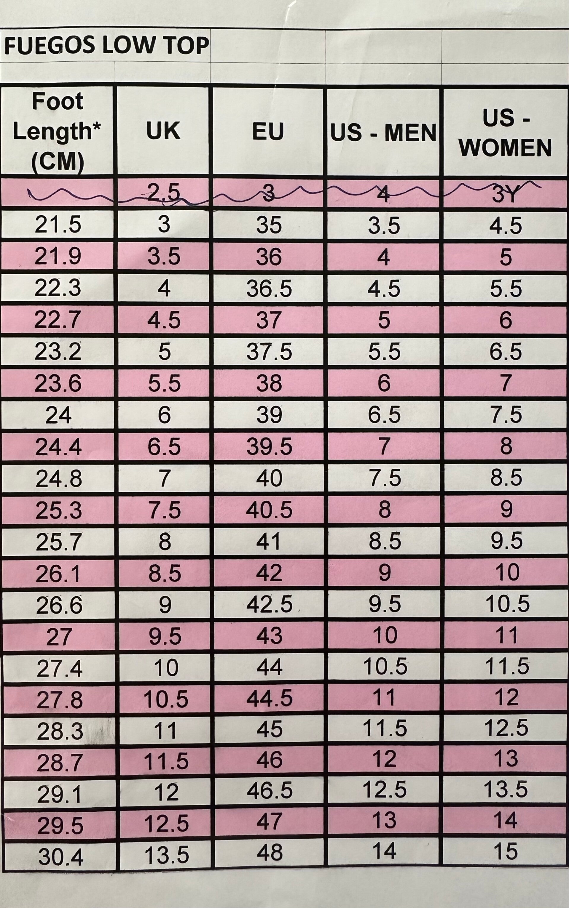 Please see size chart - we have been advised that they small on size so may be best to order a half or one size up. Boxes are labelled in US sizes.
