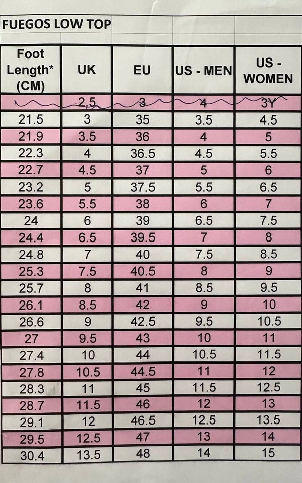 Please see size chart - we have been advised that they small on size so may be best to order a half or one size up. Boxes are labelled in US sizes.